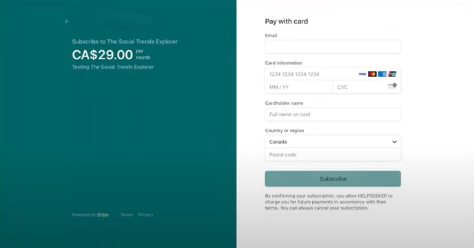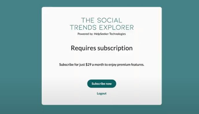 Successfully log in and pay for a subscription on Social Trends Explorer
